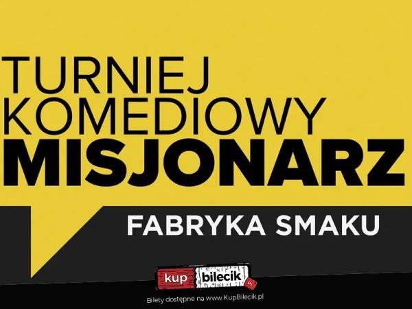 Zapraszamy na Misjonarza! Jest to Turniej Komediowy, być może to pierwszy taki turniej w Polsce, a nawet na całym Podkarpaciu. W Fabryce Smaku czterech komików będzie walczyć w bitwach na żywo, na niby i na ekranie. Wszystko to ku ucieszę loży szyderców, czyli publiki. Nie przegap!